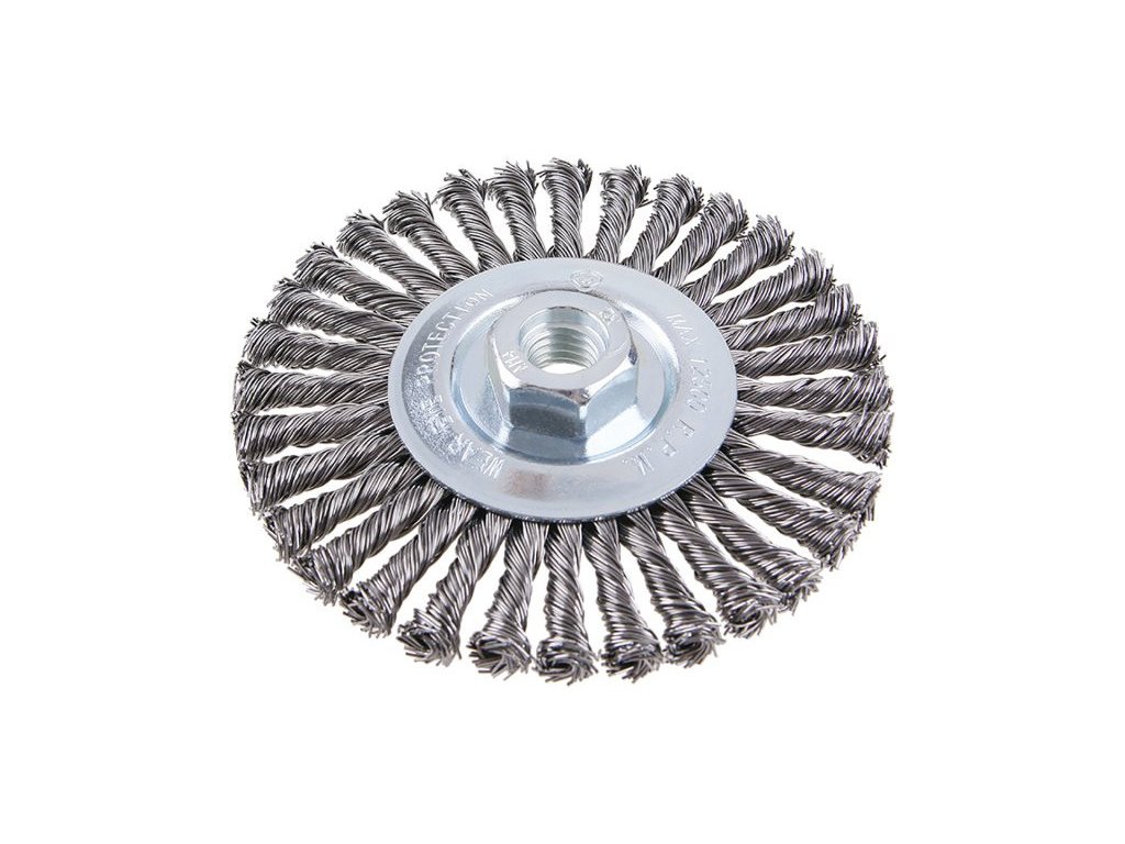 Rotary brush - radial, design: COPY - patented wire 0.5 mm - copy, do not unravel even under extreme load, FESTA brushes guarantee quality used materials and processing, diameter 100 mm Thread M14x2mm Galvanized brush body Number of wires: 1584, Wire length: 27mm Max. permissible speed: 10000 1/min Application: removal of paint, rust, burrs, welding residues, slag, roughening, cleaning of metal