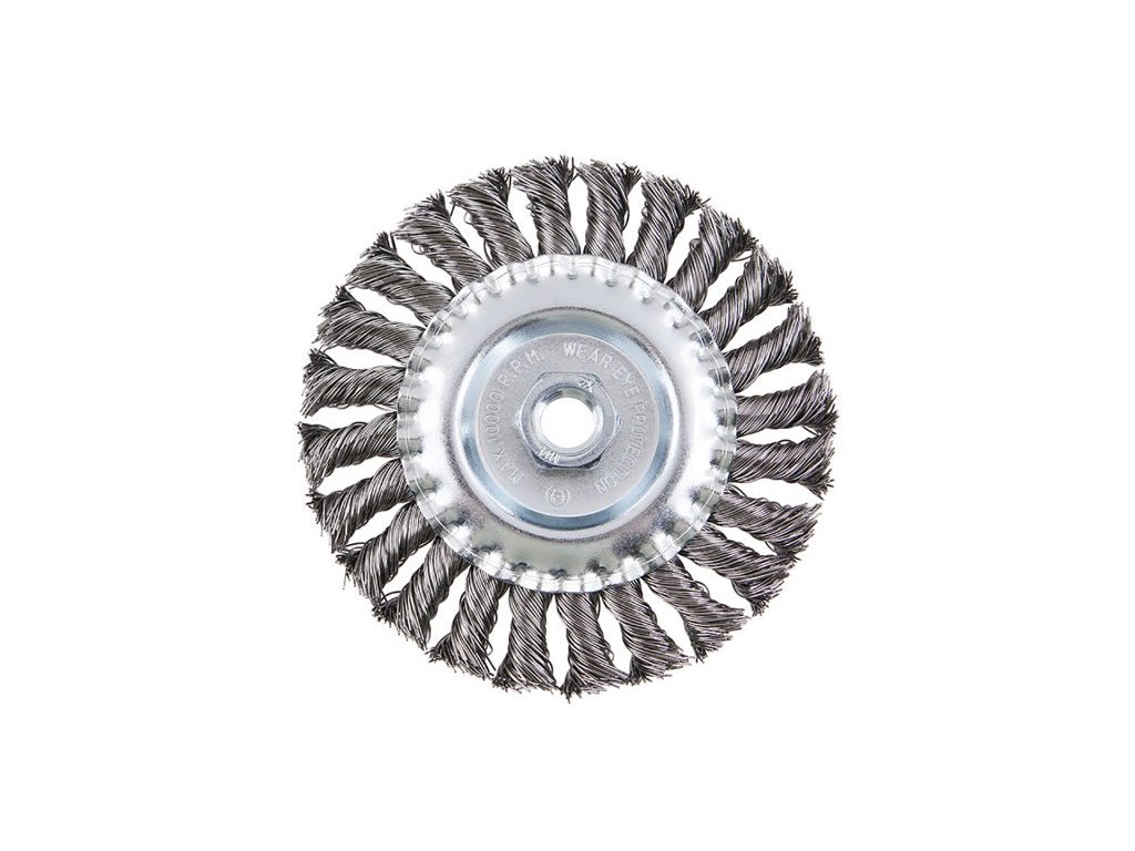 Rotary brush - radial, design: COPY - patented wire 0.5 mm - copy, does not unravel even under extreme load, FESTA brushes guarantee quality used materials and processing, diameter 125 m, thread M14x2mm, galvanized brush body, number of wires: 1584, wire length: 27mm, max. permissible revolutions: 10000 1/min, use: removal of paint, rust, burrs, welding residues, slag, roughening, cleaning of metal parts, packaging: paper box with euro hole.
