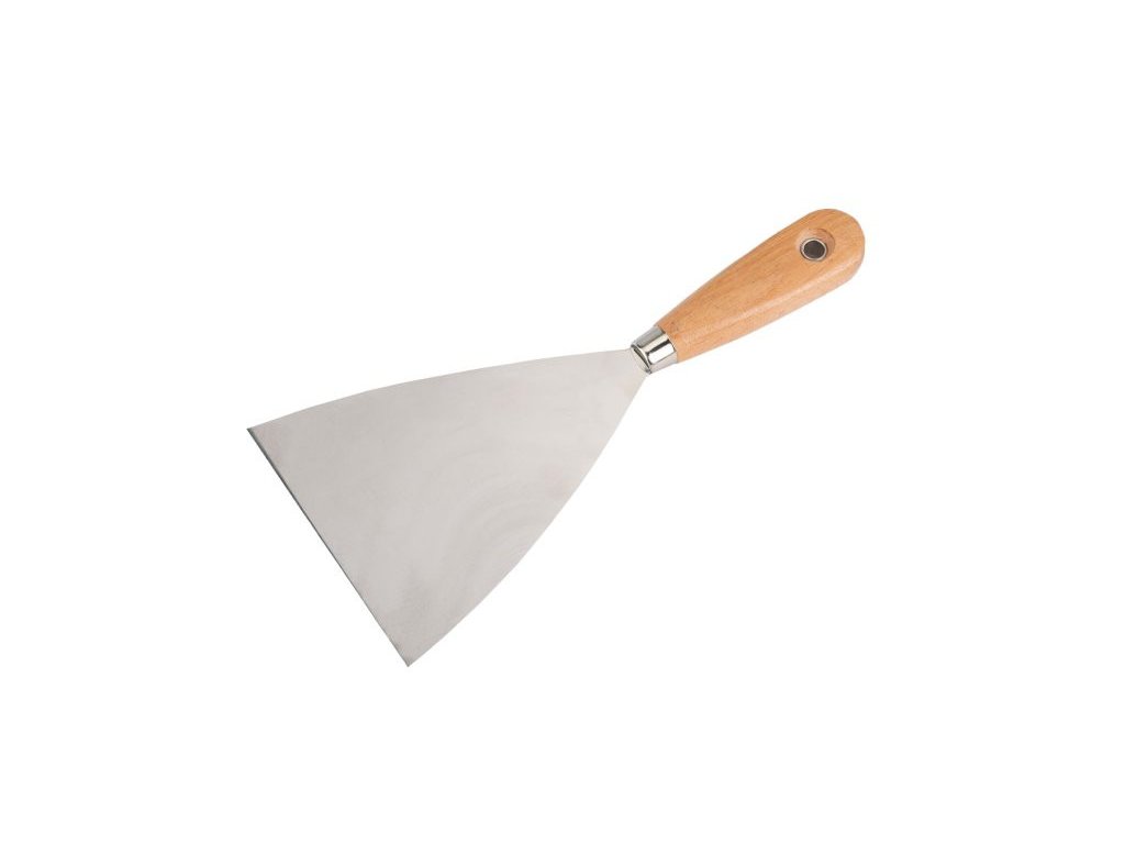 FESTA stainless steel wedge spatula 100 mm with wooden handle. It is used in plastering, painting, painting, body repairs or artistic creation, etc. It is suitable for spreading plaster or other sealants or for removing old paint and coatings.