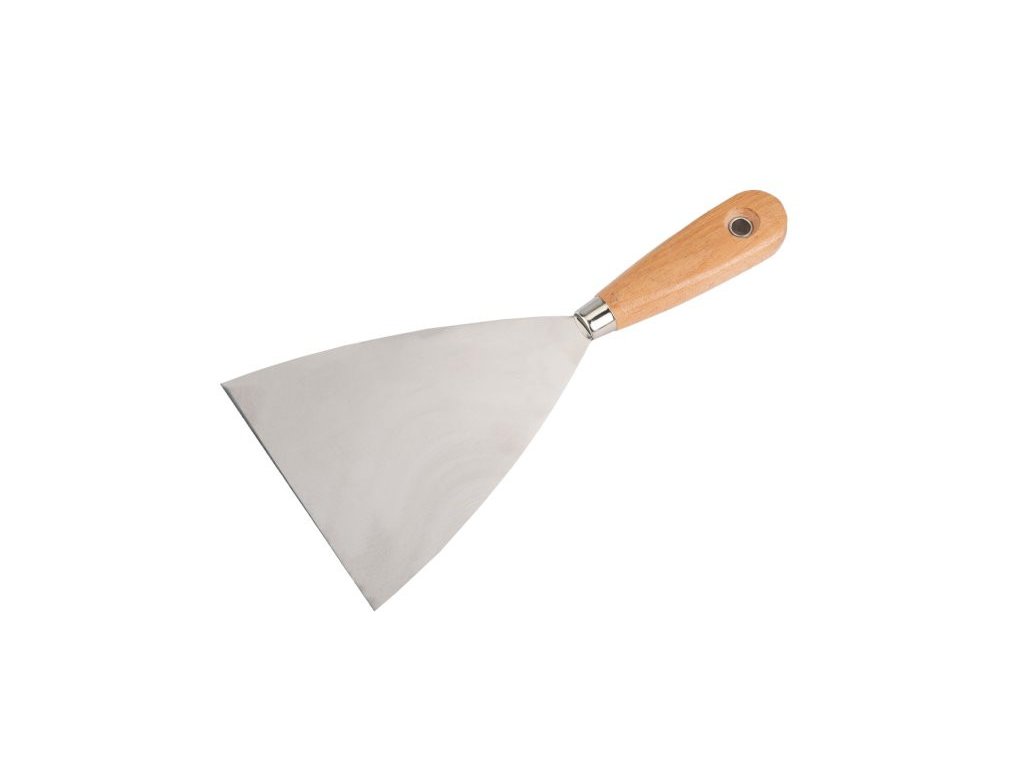 FESTA stainless steel wedge spatula 120 mm with wooden handle. It is used in plastering, painting, painting, body repairs or artistic creation, etc. It is suitable for spreading plaster or other sealants or for removing old paint and coatings.