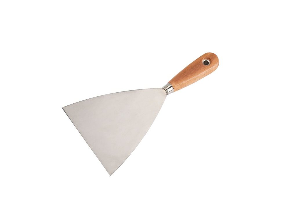 FESTA stainless steel wedge spatula 140 mm with wooden handle. It is used in plastering, painting, painting, body repairs or artistic creation, etc. It is suitable for spreading plaster or other sealants or for removing old paint and coatings.