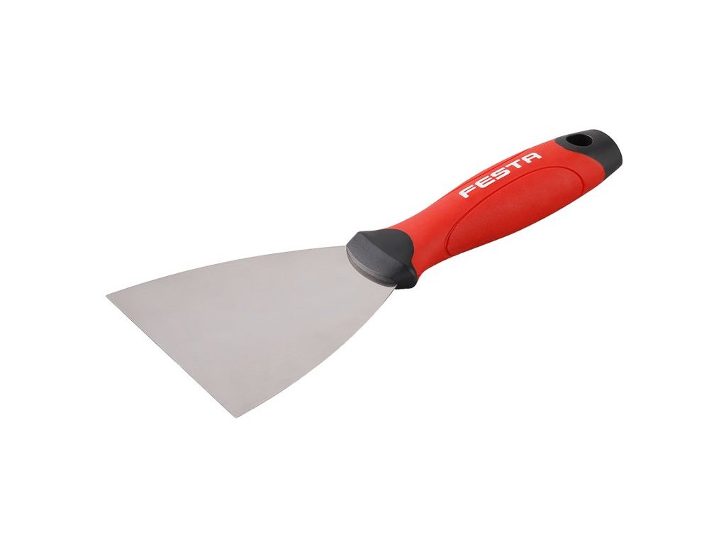 Spatula stainless steel FESTA 80 mm with ergonomically shaped rubber handle. It is used in plastering, painting, painting, body repairs or artistic creation, etc. It is suitable for spreading plaster or other sealants or for removing old paint and coatings.