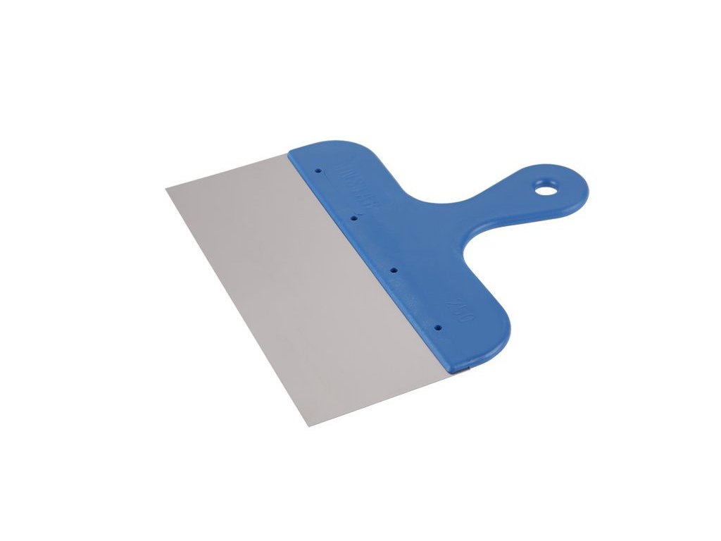 Spatula facade stainless steel 250 mm with plastic handle. It is used in plastering, painting, painting, body repairs or artistic creation, etc. It is suitable for spreading plaster or other sealants or for removing old paint and coatings.
