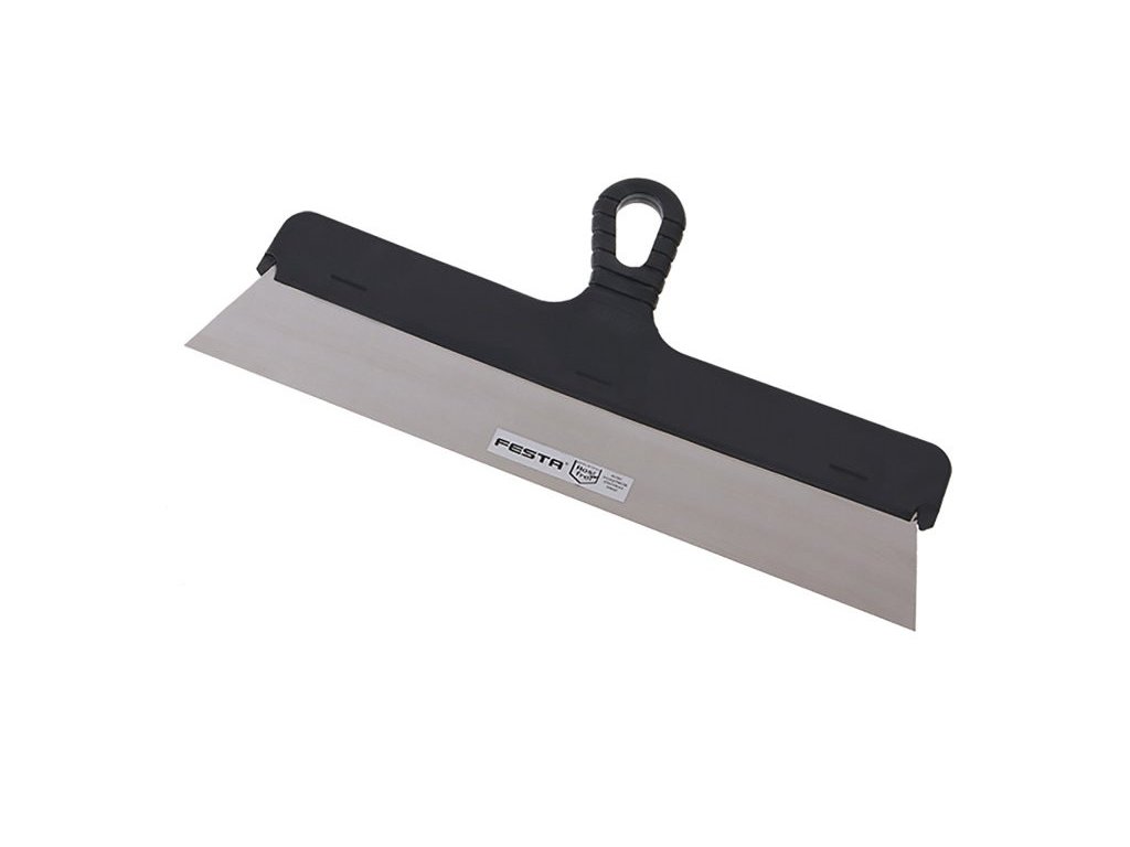 Spatula facade stainless steel 400 mm FESTA with plastic handle. It is used in plastering, painting, painting, body repairs or artistic creation, etc. It is suitable for spreading plaster or other sealants or for removing old paint and coatings.