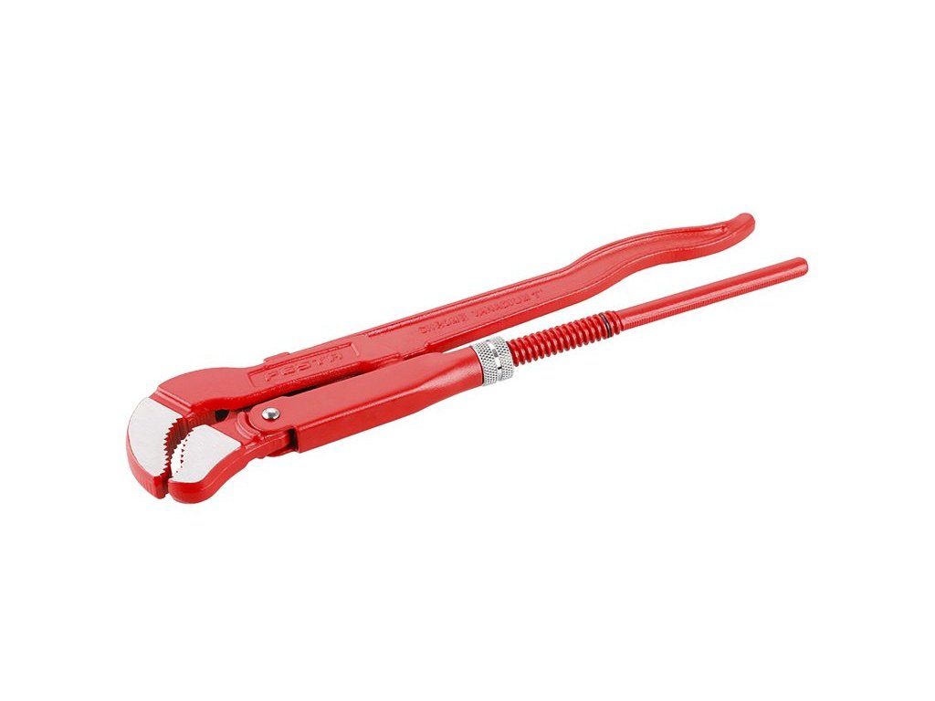 FESTA wrench 420mm, S-shaped jaws chrome vanadium steel with ace-shaped jaws, especially suitable for pipes and round materials grooved jaws with teeth in the opposite direction rotation, quick and easy adjustment of the jaw spacing using an adjustment nut with protection against unscrewing maximum jaw range 75 mm< /li>