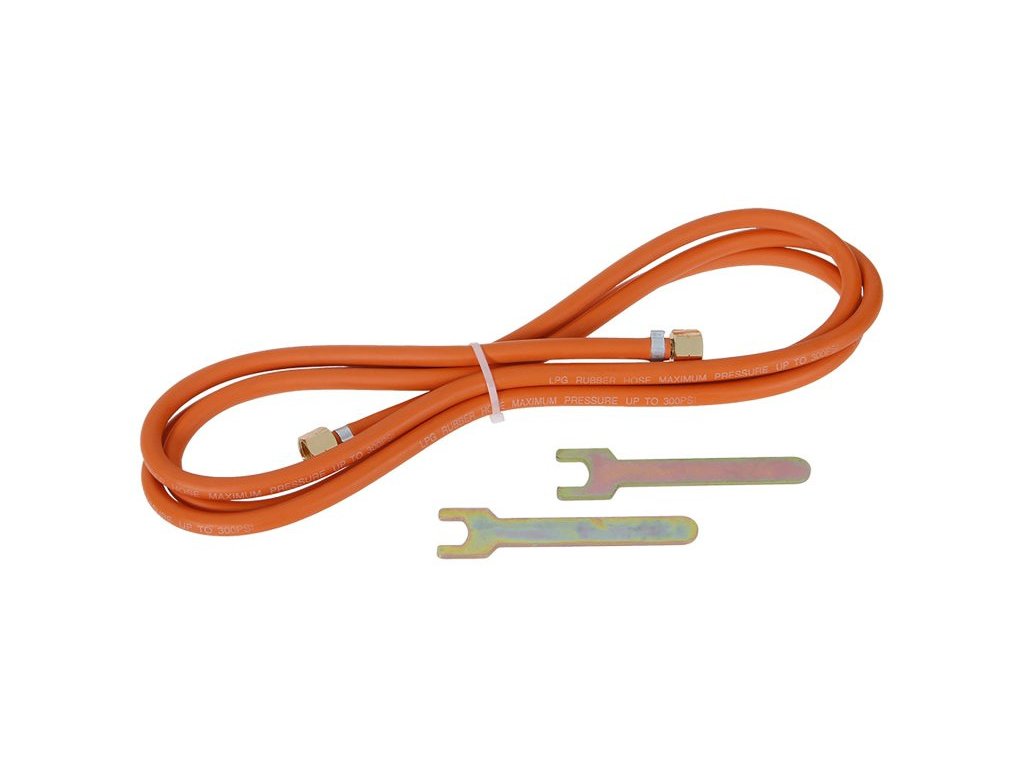 A tömlő mindkét oldalán G 3/8" menettel rendelkezik, kizárólag nyomásszabályozóval használható - lásd a képen a kapcsolási rajzot.
