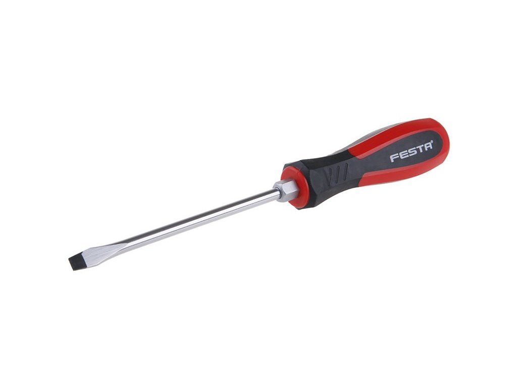 The metal shaft of the FESTA screwdriver is made of high-quality chrome vanadium steel, the hardened tip is magnetic, the screwdriver shaft is firmly connected to the impact end, the handle has a hexagon for the use of a key, the combination of polypropylene and rubber on the handle and its ergonomic shape guarantee good anti-slip properties and good durability against lubricants and chemicals.