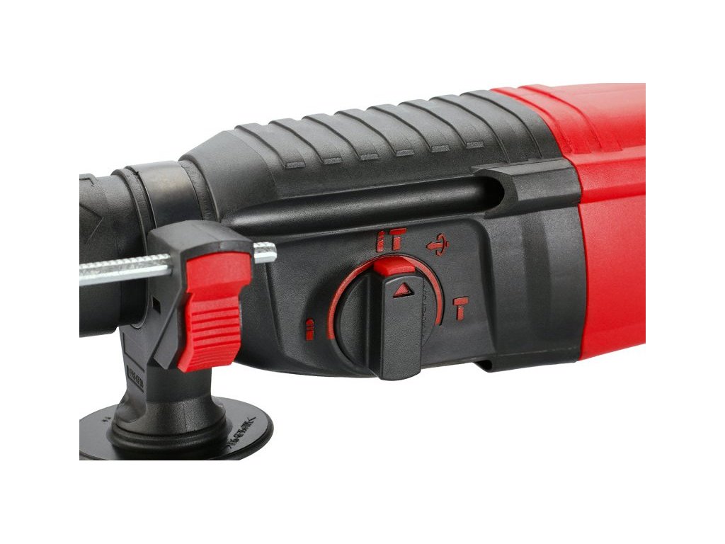 A kalapácsot praktikus tokban szállítjuk tartozékokkal együtt - SDS+ 6 fúrószár 8, 10 x 160 mm, SDS+ lapos vésők 20 x 250 mm és tépőfogas 250 mm, gyorsan cserélhető fúrótokmány hengeres szárral 2-13 mm, mélységütköző, tartalék kefék (külön rendelhető a 28223 szám alatt)