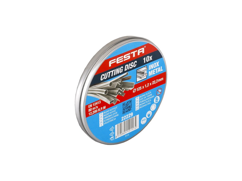 FESTA Rezný kotúč na kov v kovovom boxe 125 x 1 x 22,2 mm (10ks/cs)