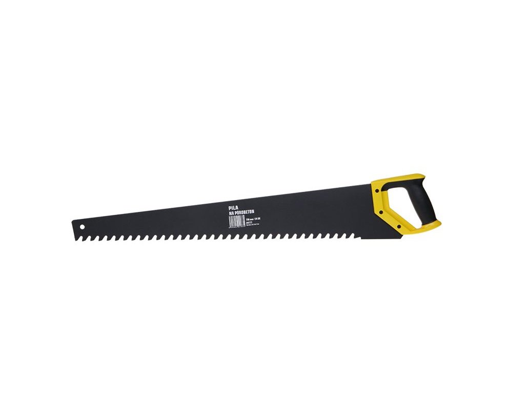 Ergonomic ABS handle with softened TPR rubber. Rigid steel sheet with carbide inserts guaranteeing long-term cutting performance. Number of fitted teeth: 34 Working length: 750mm Use: professional saw for cutting aerated concrete blocks.
