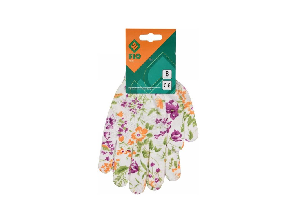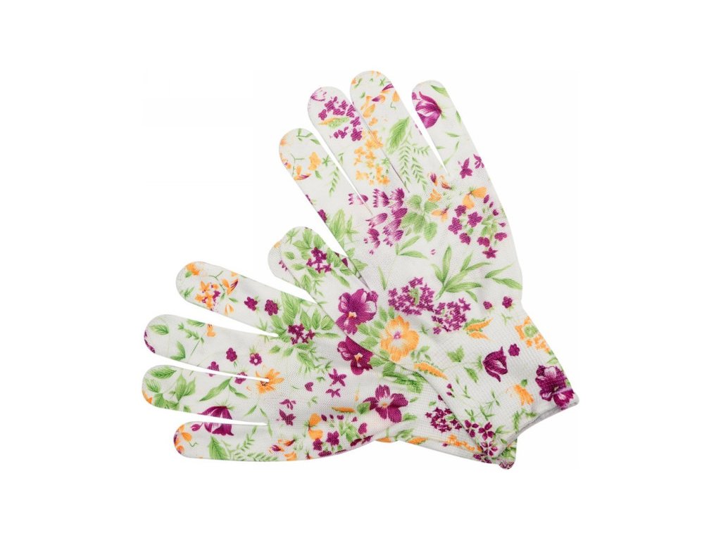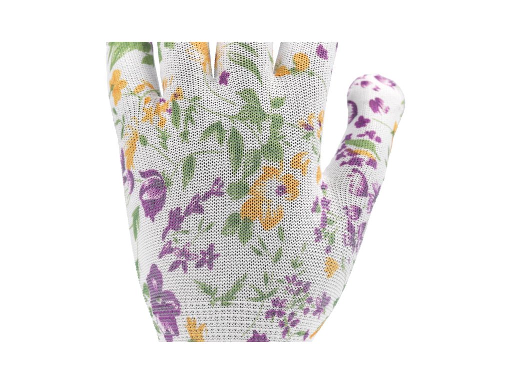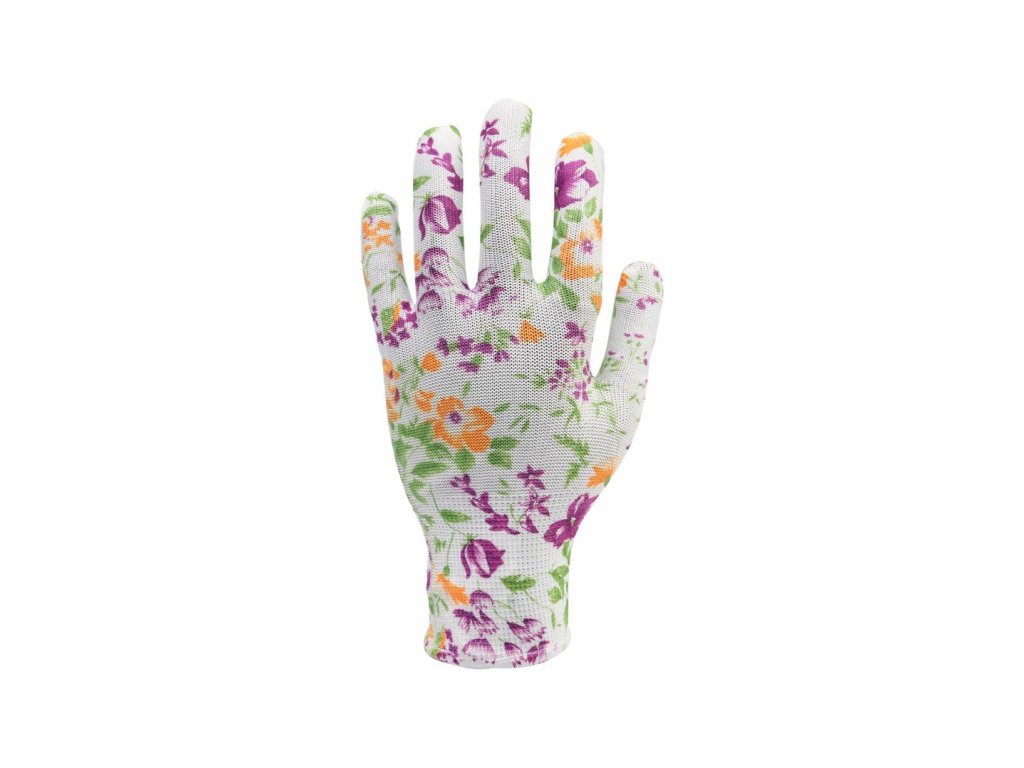 Záhradnícke rukavice FLO s bielym kvetinovým vzorom veľkosť 8