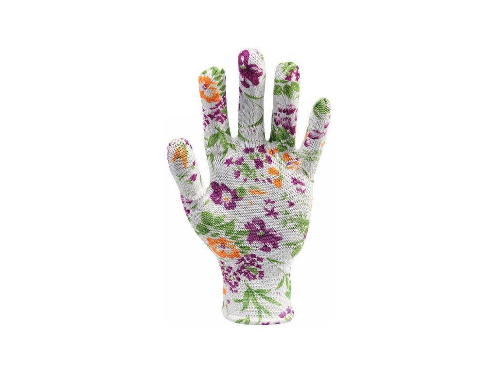 Záhradnícke rukavice s bielym kvetinovým vzorom FLO 8