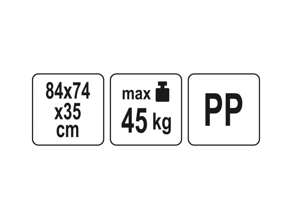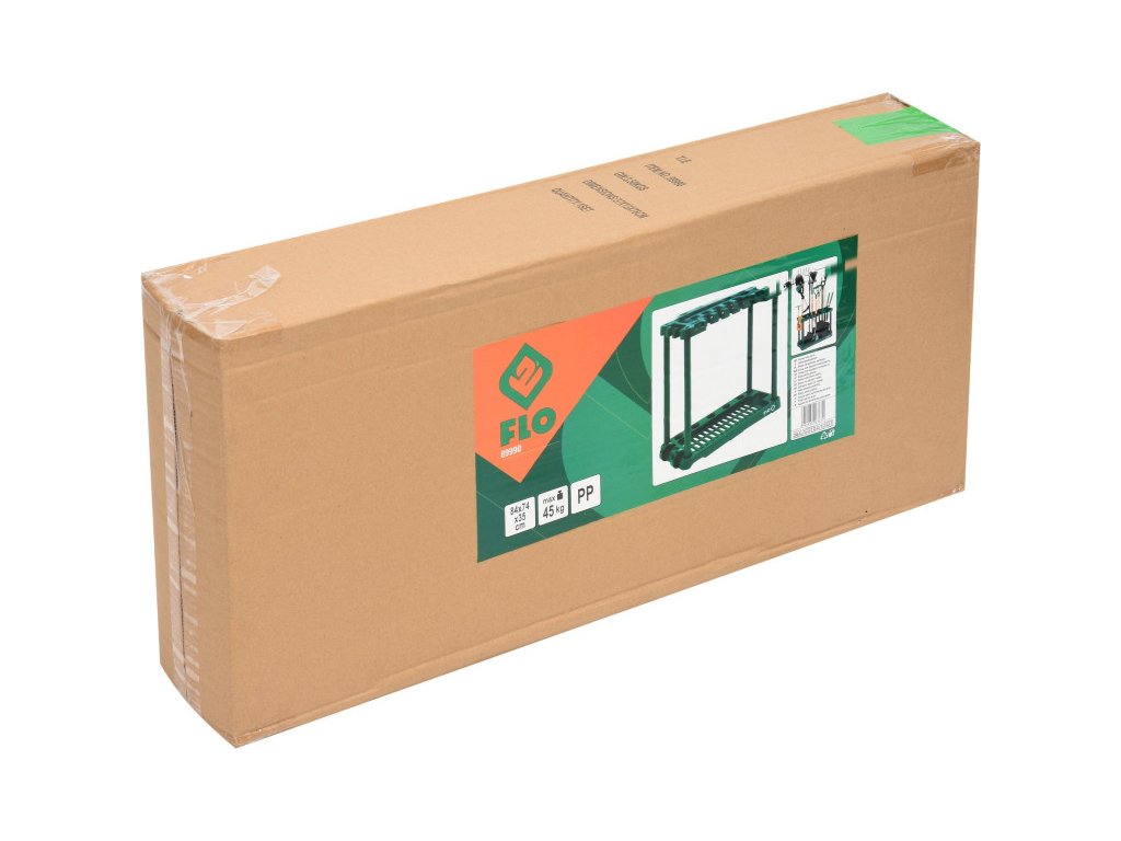 Praktikus megoldás hosszú kerti eszközök, mint például kapák, lapátok, villák, valamint kisebb kéziszerszámok vagy hosszabbítók tárolására. Az előlapon található fogantyúk lehetővé teszik, hogy az eszközöket a fejükkel ellentétes irányba tároljuk, így nem nehezítik a tartót.