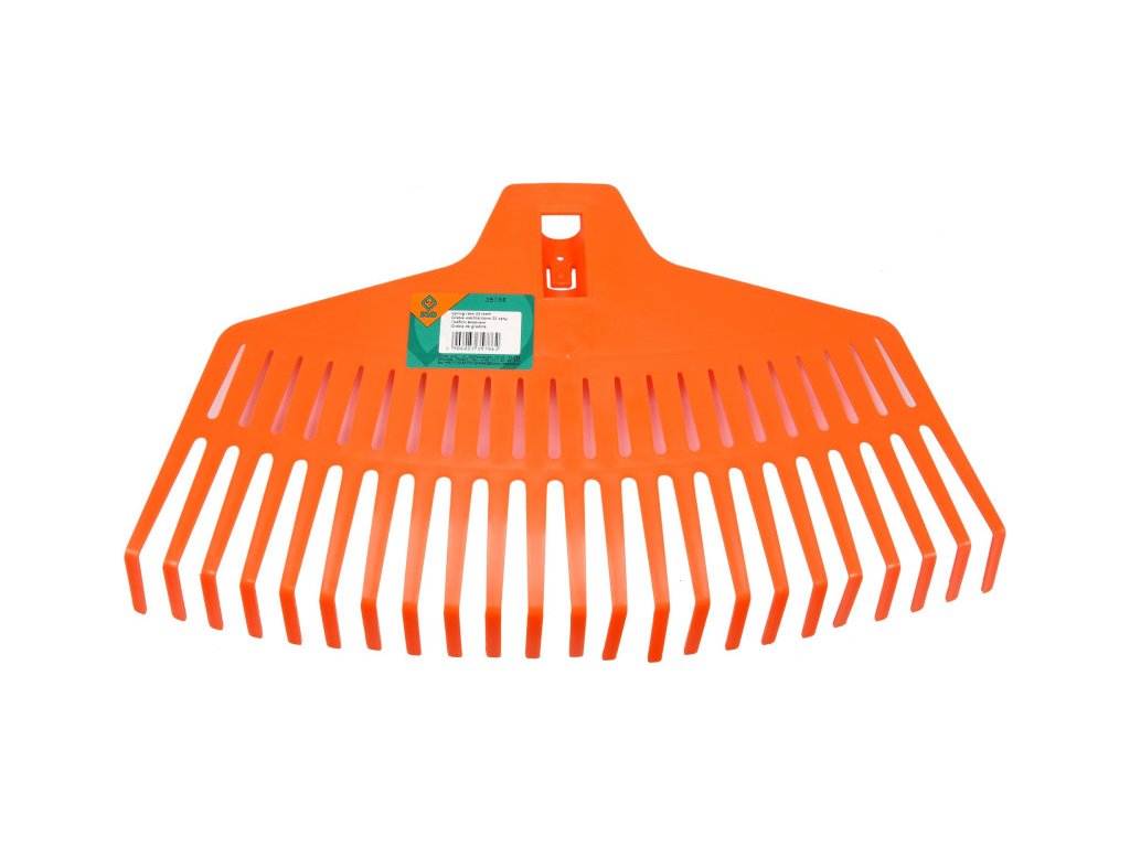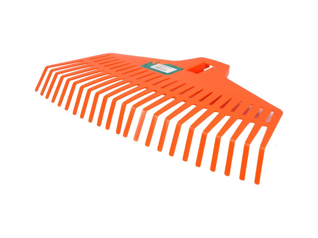 Könnyű, műanyagból készült gereblye a gyepápoláshoz, levelek összegyűjtéséhez és minden kerti és ház körüli takarítási munkához. Fogak száma: 23. Hozzáigazítva a tipikus fa nyélre történő rögzítéshez.