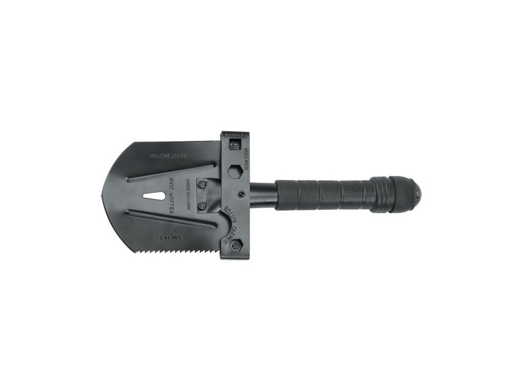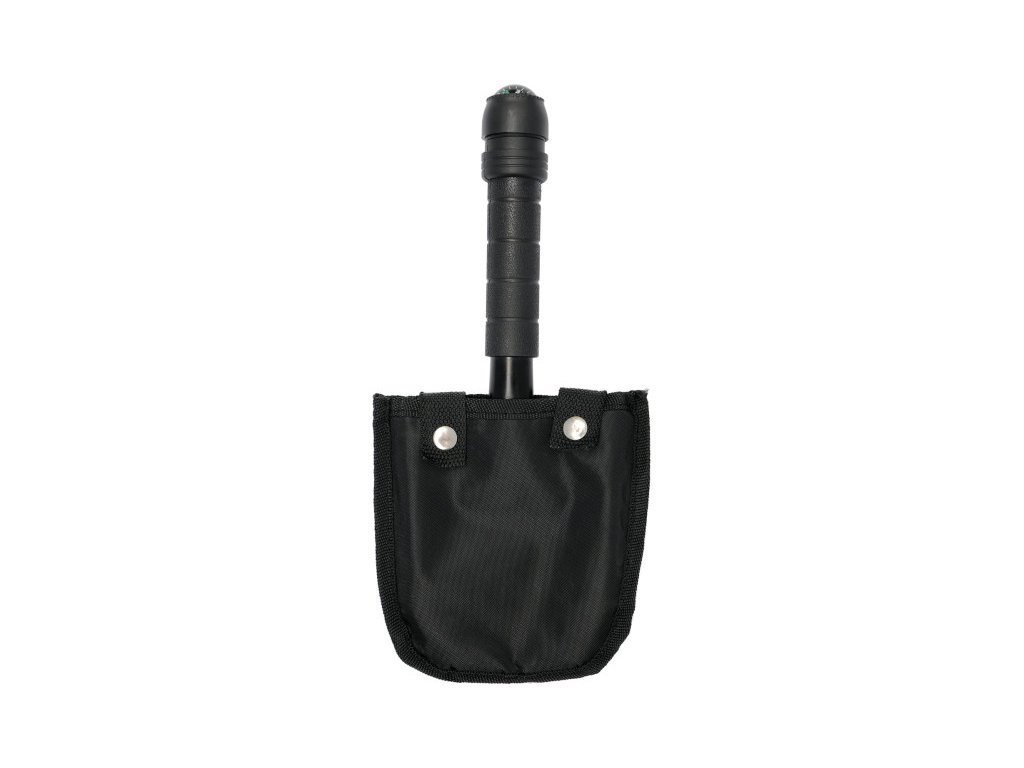 Egy acélból készült multifunkcionális ásó ergonomikus és masszív fémből készült nyéllel.
