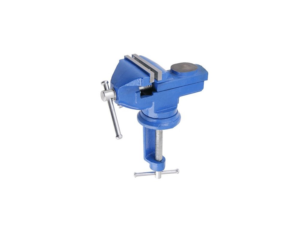 Cast iron mini vise with anvil, turning the vise using the turntable, body and movable arm cast in one piece each guarantee great durability and strength, maximum spacing for clamping - 75 mm, jaw width - 70 mm, maximum jaw opening - 60 mm, weight - 1800 g