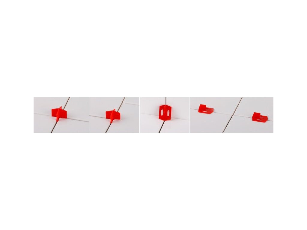 Reusable multifunctional crosses for defining the same joint in different types of paving and tiling special shape allows you to use crosses to define the same joint of tiles when laying on cut, on bond, on miter, for precise paving transitions from a horizontal plane to a vertical one the individual dimensions of the crosses 1, 1.5, 2 and 3 mm are color-coded, for easy clarity and to avoid confusion during use