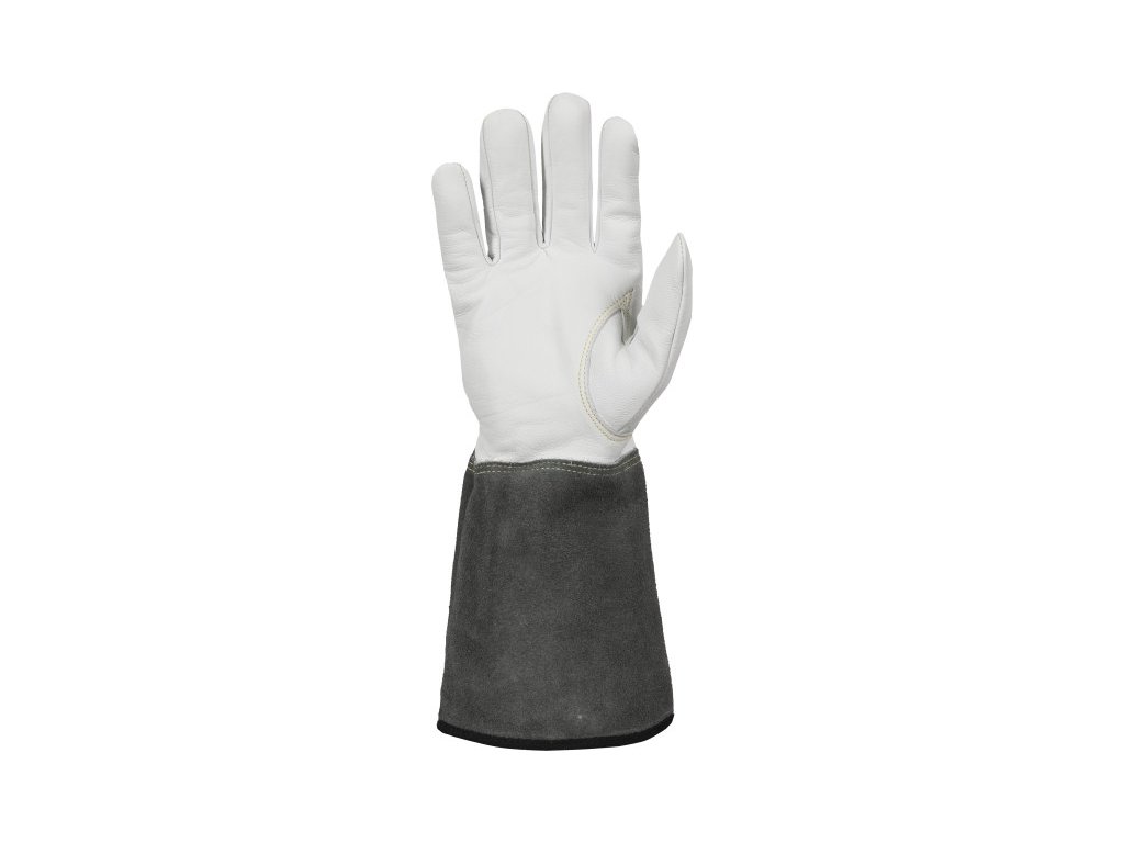 Hegesztőkesztyű tartós és puha fedett kecskebőrből a tenyérrészen és a kézfejrészen. TIG hegesztéshez alkalmas.
