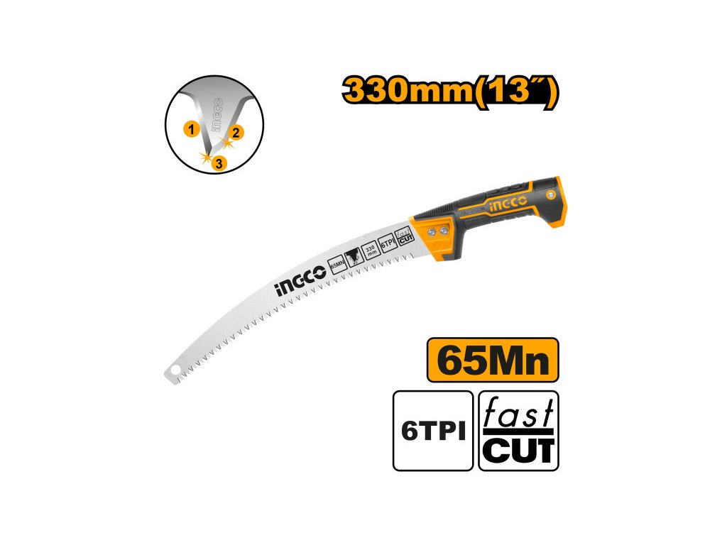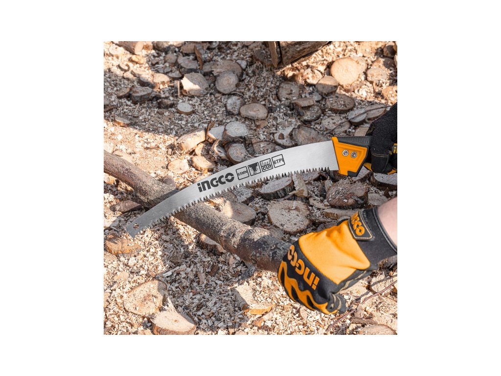 3. A fűrészlap ívelt, ami rugalmasabbá teszi a fűrész ívét, erősebb húzóerővel, nem akad el, sima vágási felületet biztosít, gyorsabb és élesebb, és kevesebb munkát igényel a használata;