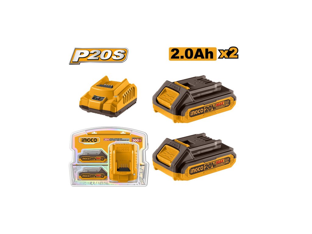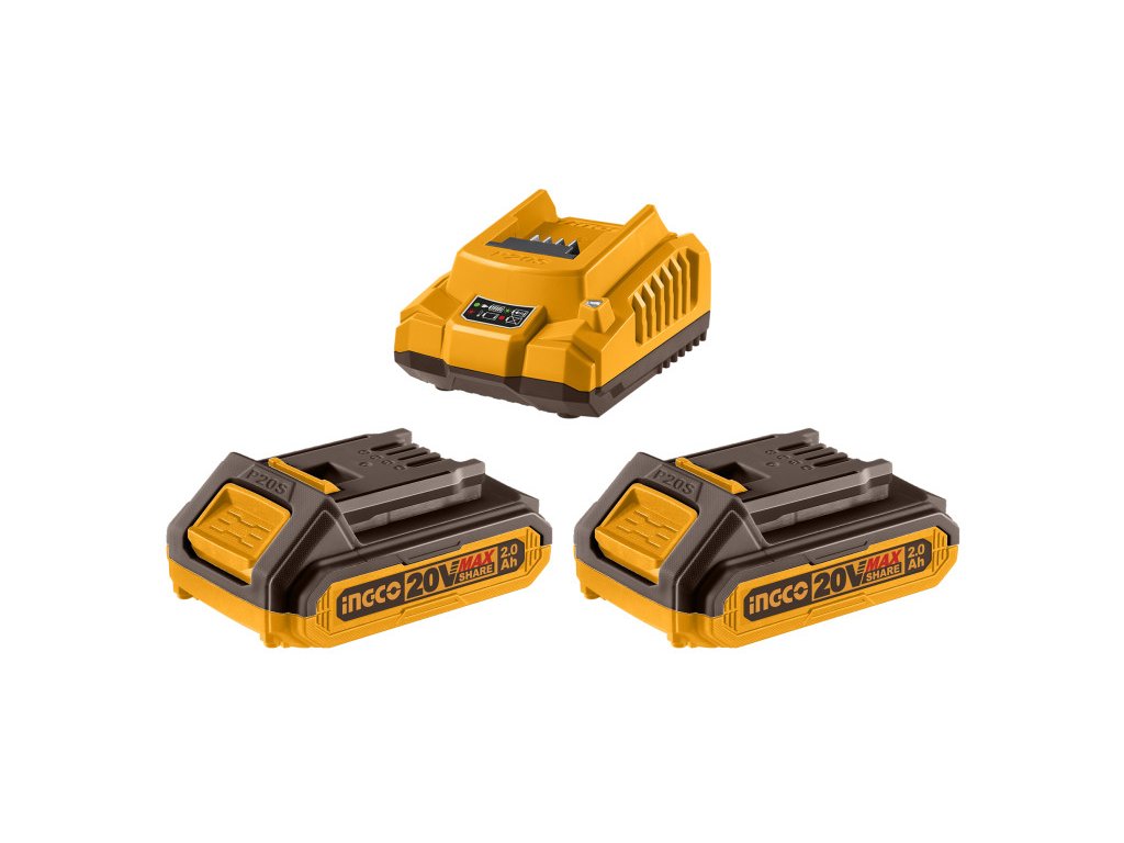INGCO Akkumulátor és töltő szett 20 V (2 x 2,0 Ah akku + 2,0 A töltő)