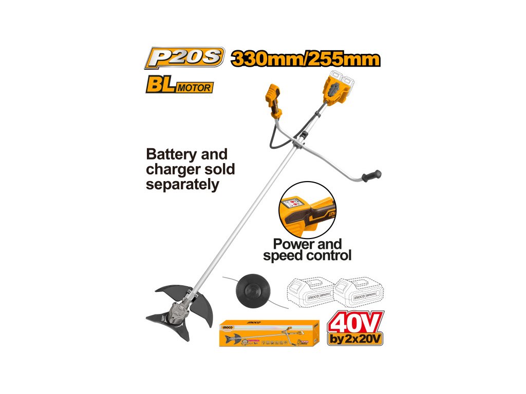 INGCO Akumulátorová kosačka 330 mm bez uhlíkovej kefky 2 x 20 V (bez akumulátora a nabíjačky)