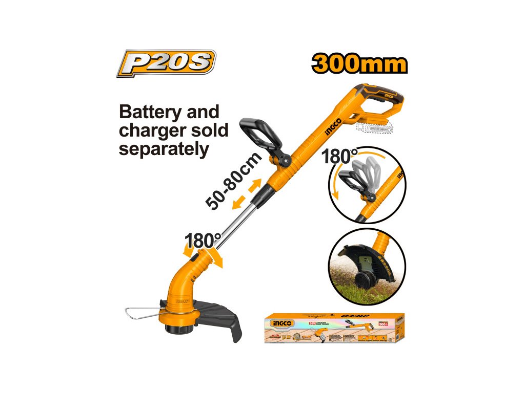 INGCO Akumulátorová kosačka na trávu 300 mm 20 V (bez akumulátora a nabíjačky)