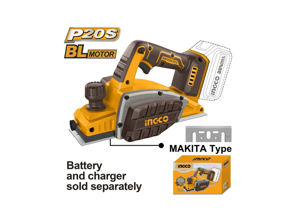 INGCO Akkus gyalu 82 x 2 mm szénkefe nélküli 20 V (akku és töltő nélkül)