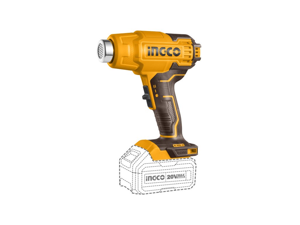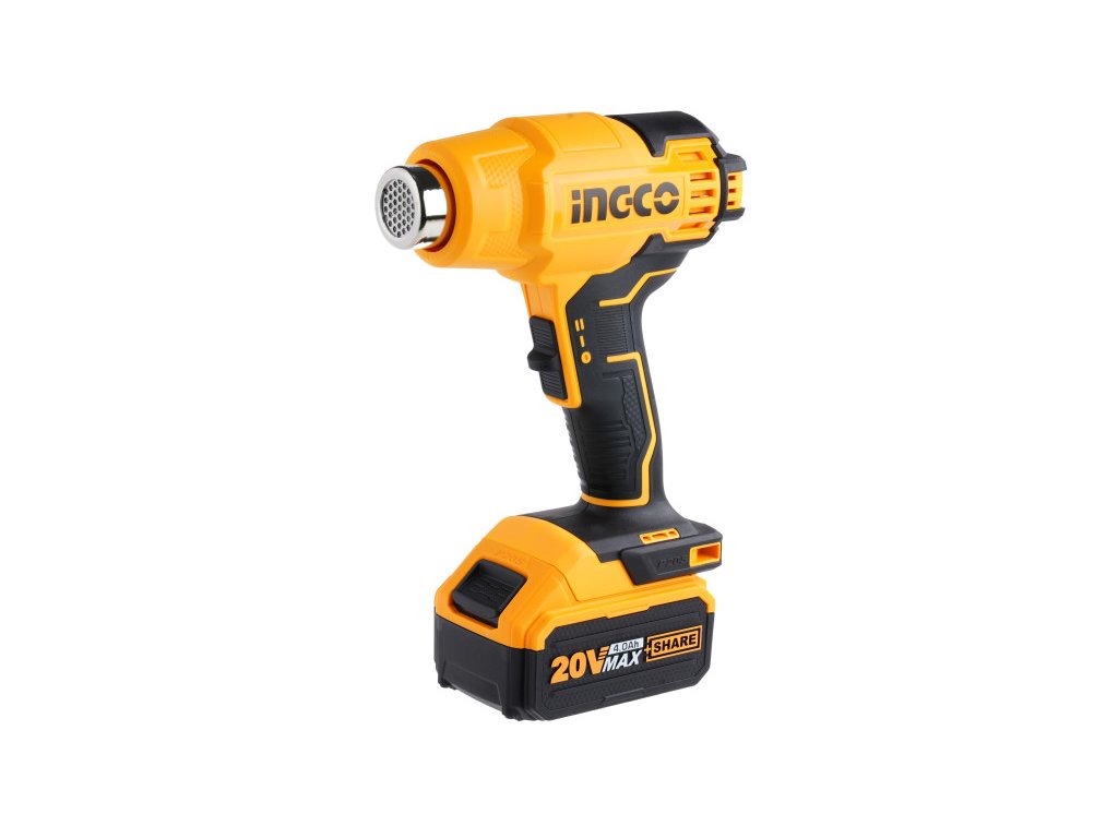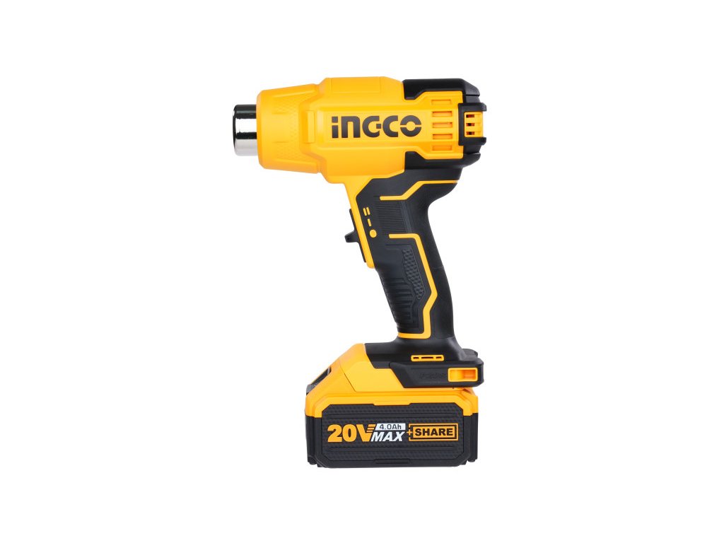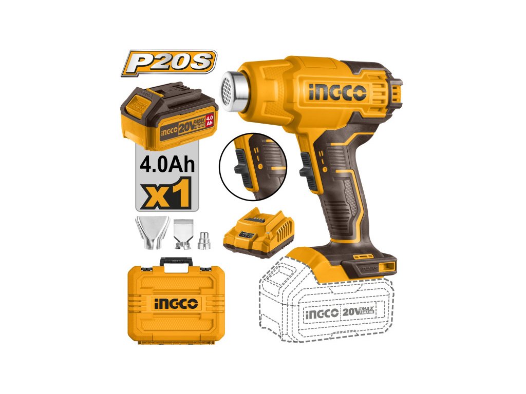 INGCO Akumulátorová teplovzdušná pištoľ 550°C 20 V (1 x 4,0 Ah batéria + nabíjačka)