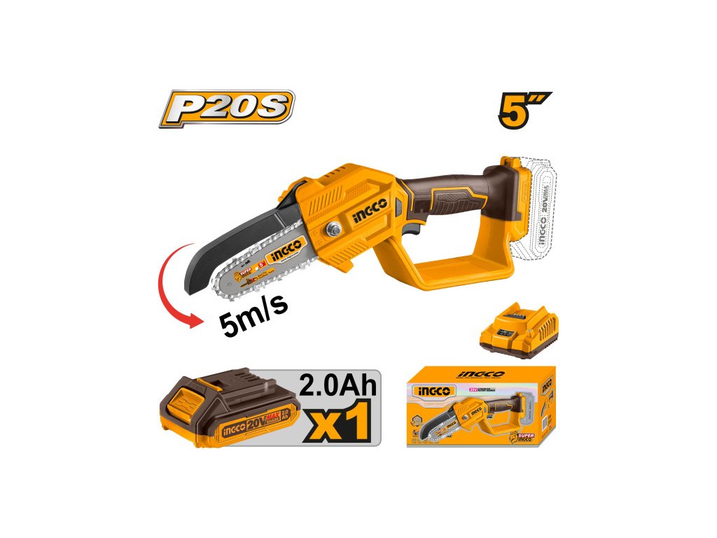 INGCO Akkus láncfűrész 127 mm 20 V (1 x 2,0 Ah akku + töltő)