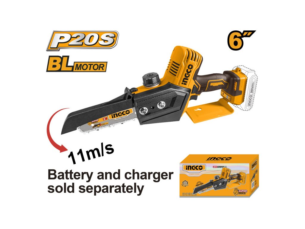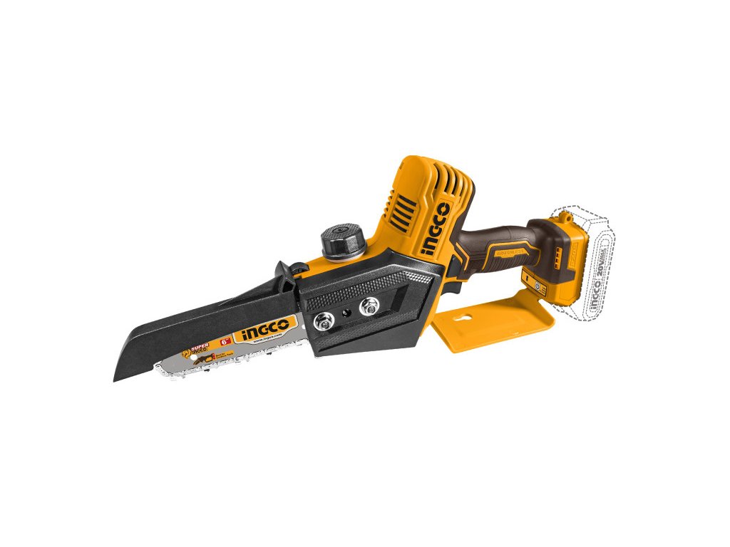 INGCO Akkus láncfűrész 150 mm szénkefe nélküli 20 V (akku és töltő nélkül)