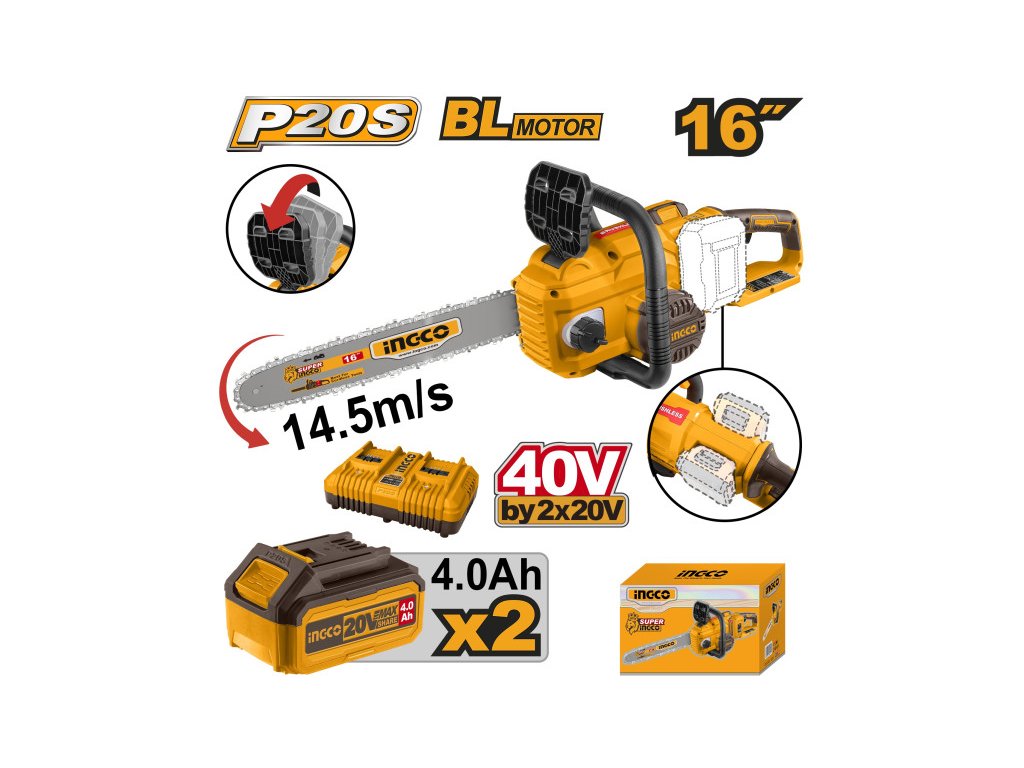 INGCO Aku reťaz. píla 400 mm 2 x 20 V (2 x 4,0 Ah bat + nabj)