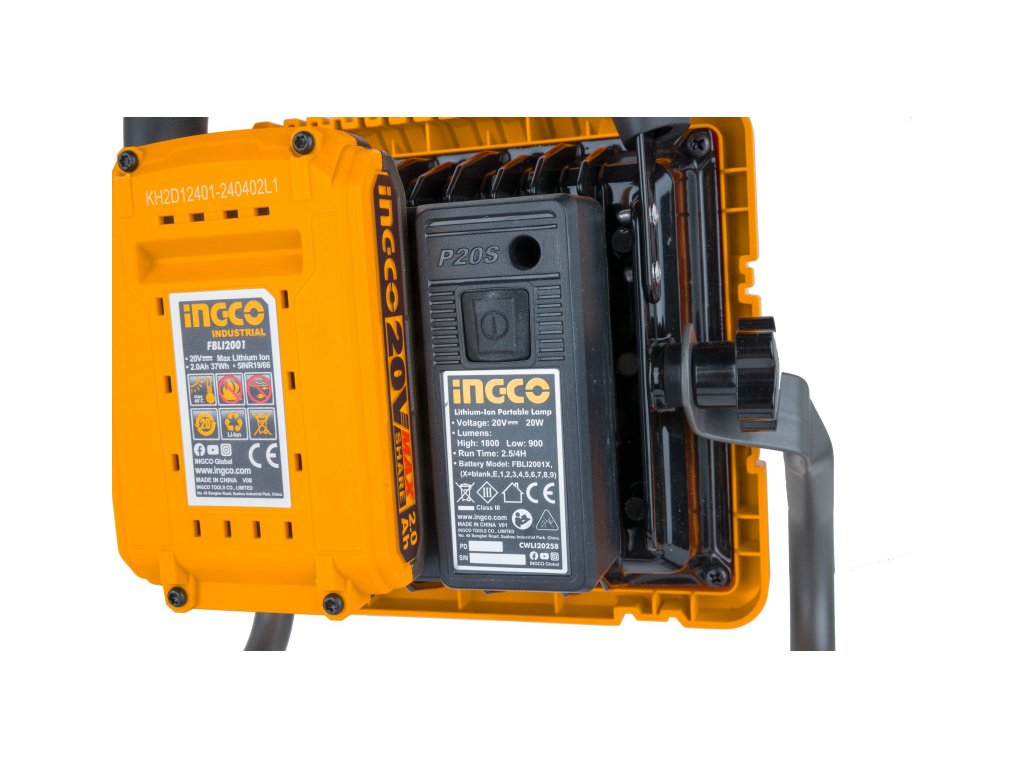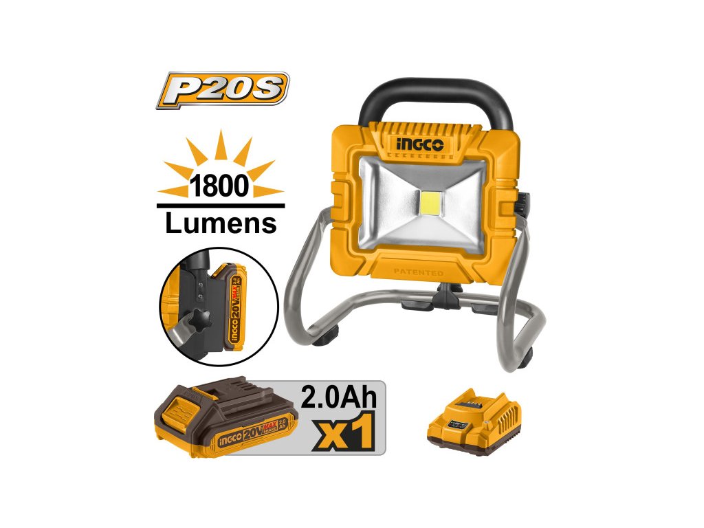 INGCO Batéria LED reflektor 1800 Lm 20 V (1 x 2,0 Ah batéria + nabíjačka)