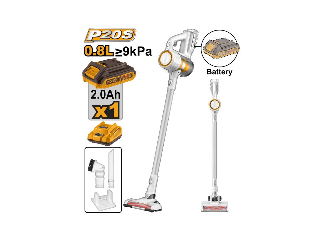 INGCO Akumulátorový vysávač 0,8 l 20 V (1 x 2,0 Ah batéria + nabíjačka)