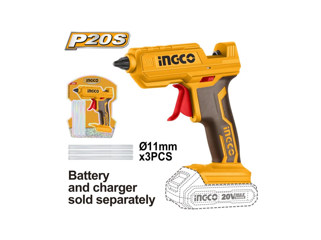 INGCO Akumulátorová lepiaca pištoľ 11 mm 20 V (bez batérie a nabíjačky)