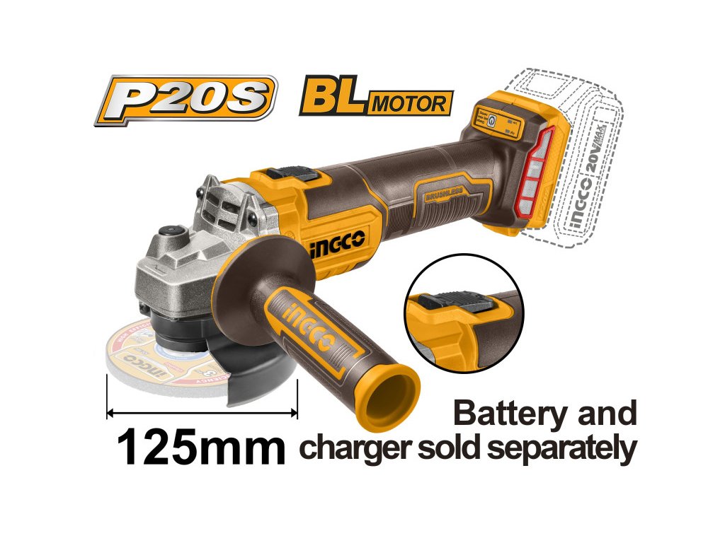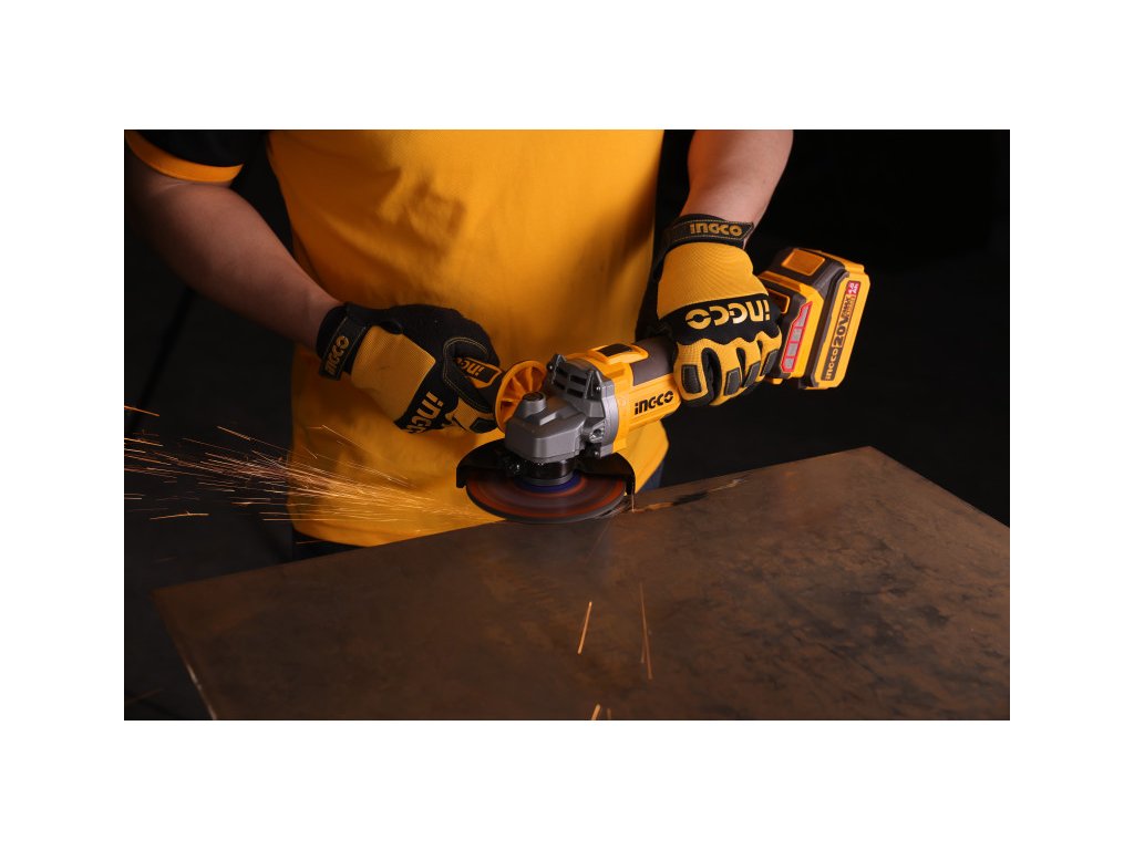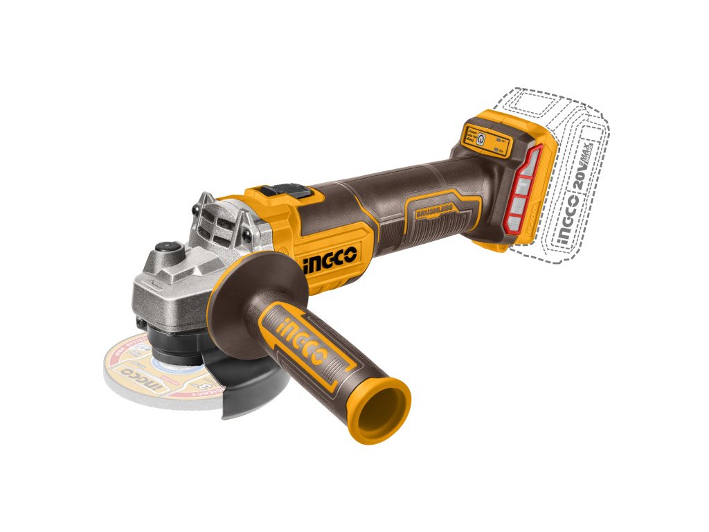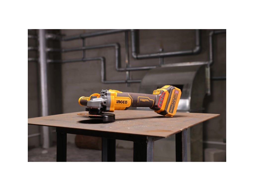 INGCO Akkus sarokcsiszoló 115 mm szénkefe nélküli 20 V (akku és töltő nélkül)