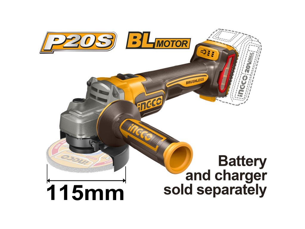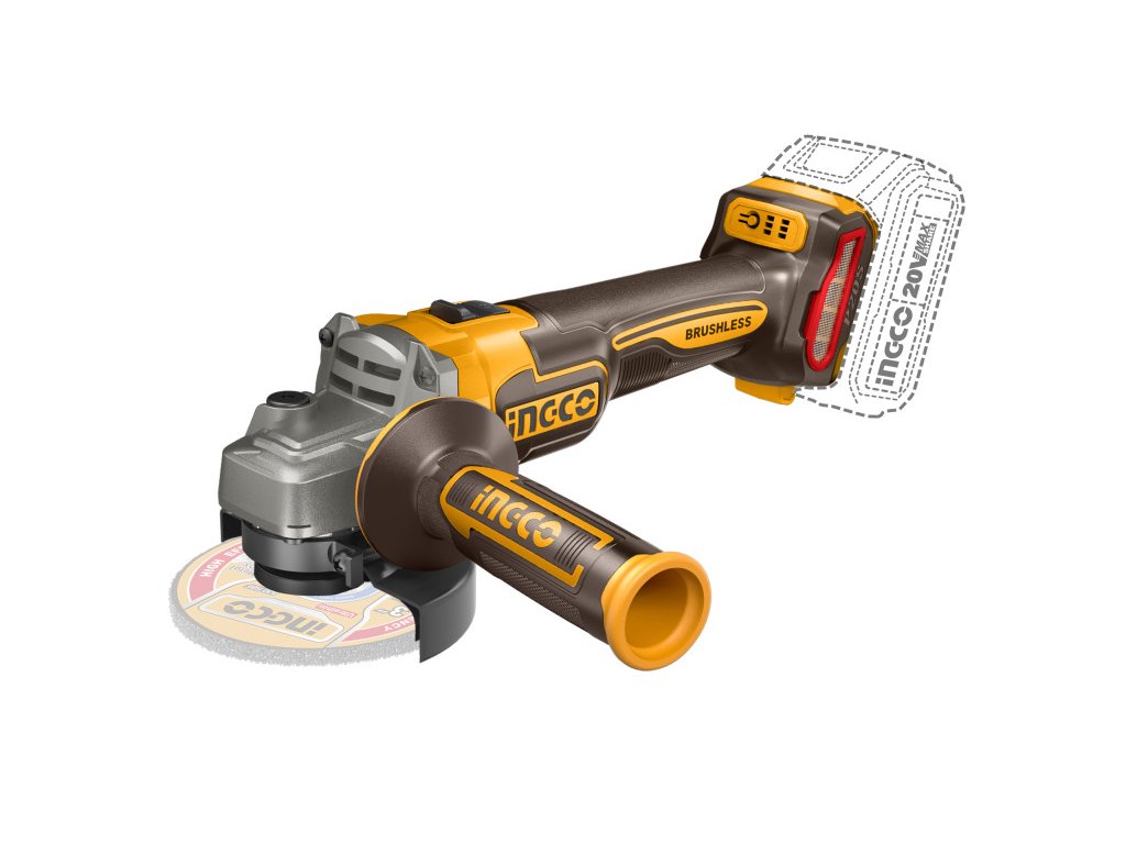 INGCO Akkus sarokcsiszoló 125 mm szénkefe nélküli 20 V (akku és töltő nélkül)