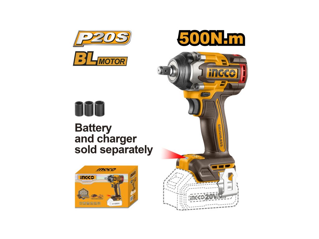 INGCO Akumulátorový rázový uťahovač 1/2" 500 Nm 20 V (bez batérie a nabíjačky)