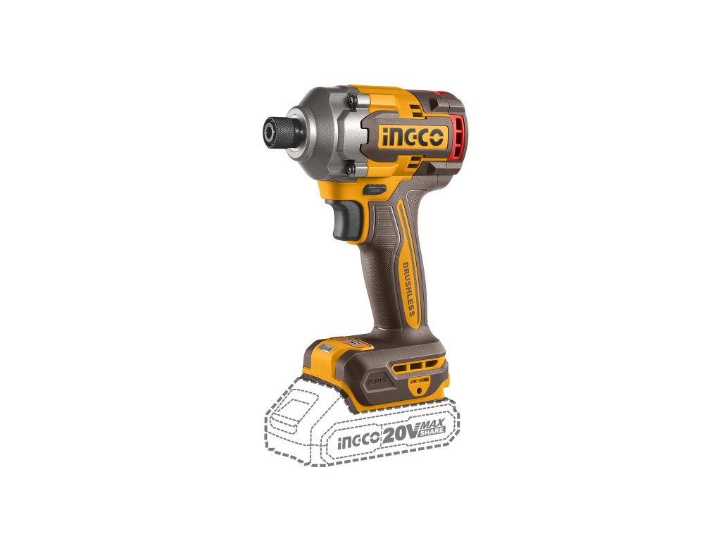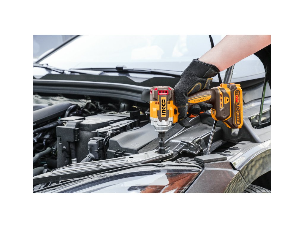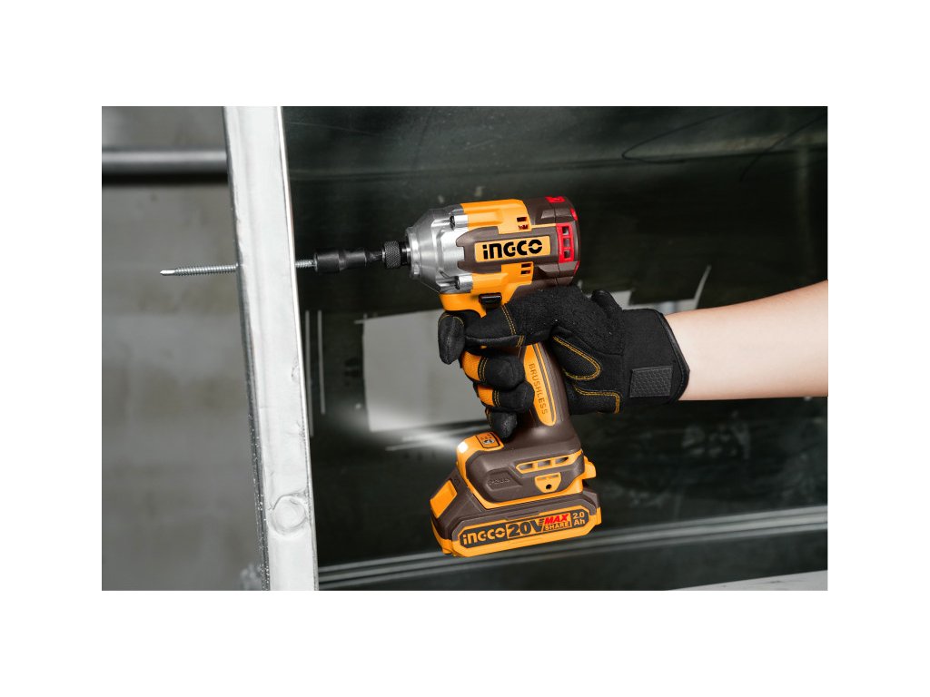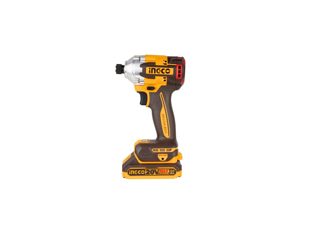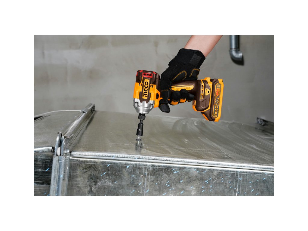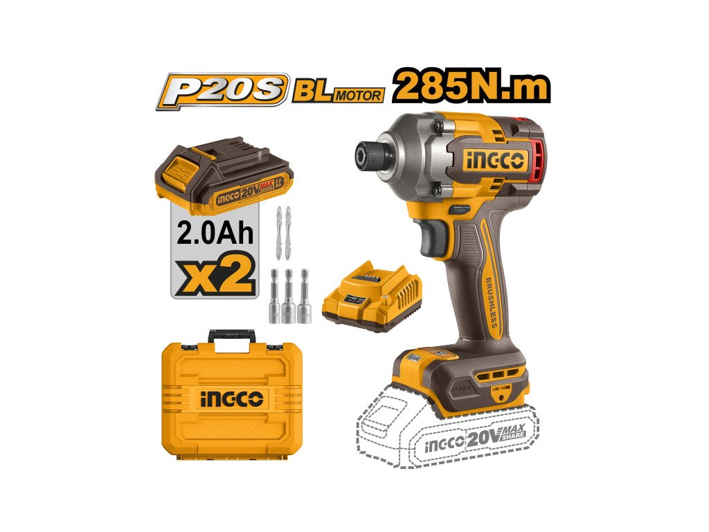 INGCO Akumulátorový rázový uťahovák 1/4 285 Nm bez uhlíkovej kefky 20 V (2 x 2,0 Ah batérie + nabíjačka)