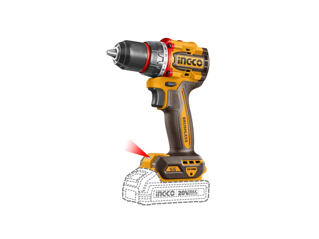 INGCO akumulátorová bezuhlíková vŕtačka 55 Nm 20 V (bez batérie a nabíjačky)