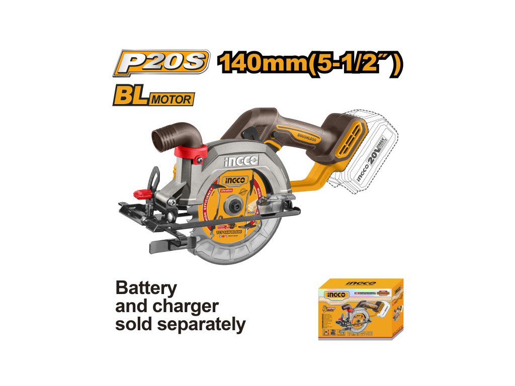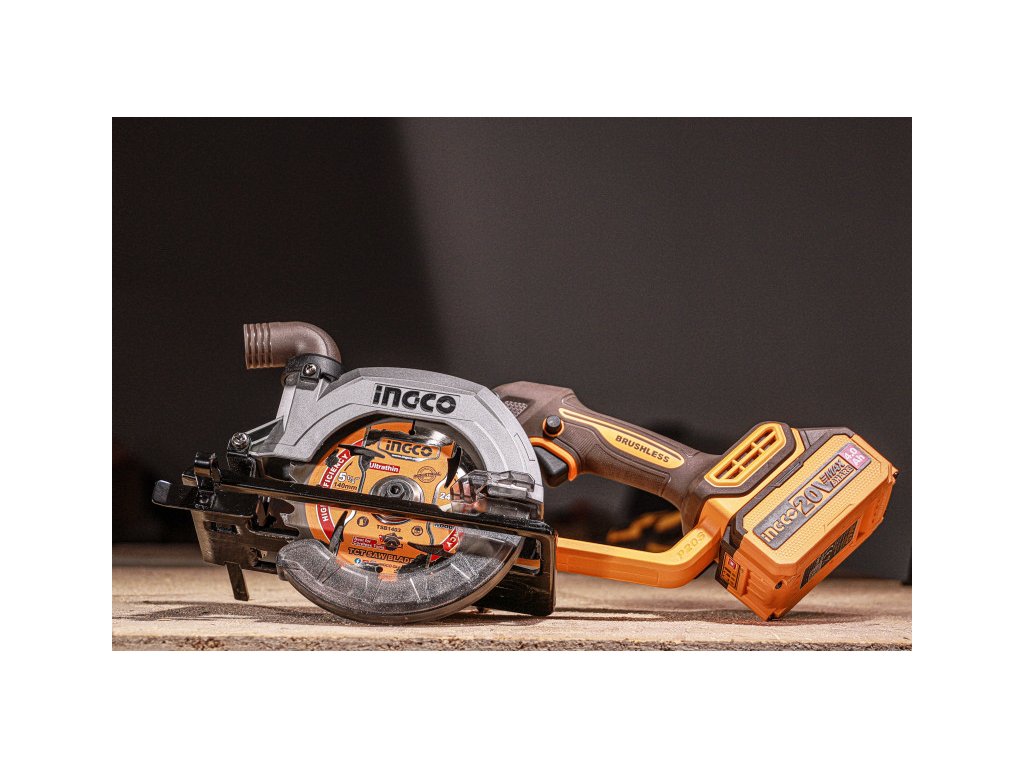 INGCO Akumulátorová kotúčová bezuhlíková píla 140 mm 20 V (bez batérie a nabíjačky)