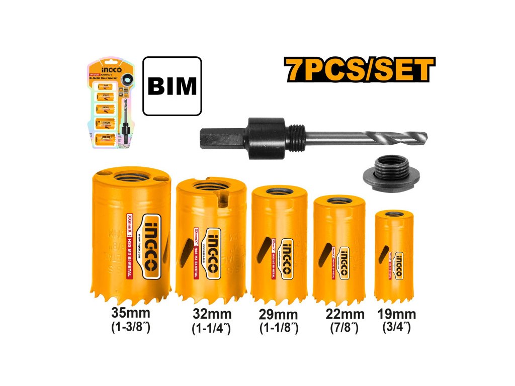 INGCO Bi-metal Sada dierovacích píl 7 dielov 19-35 mm