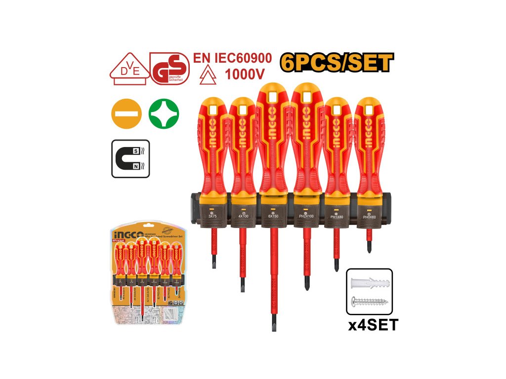 INGCO Sada izolovaných skrutkovačov 6 dielov magnetických izolovaných do 1000 V
