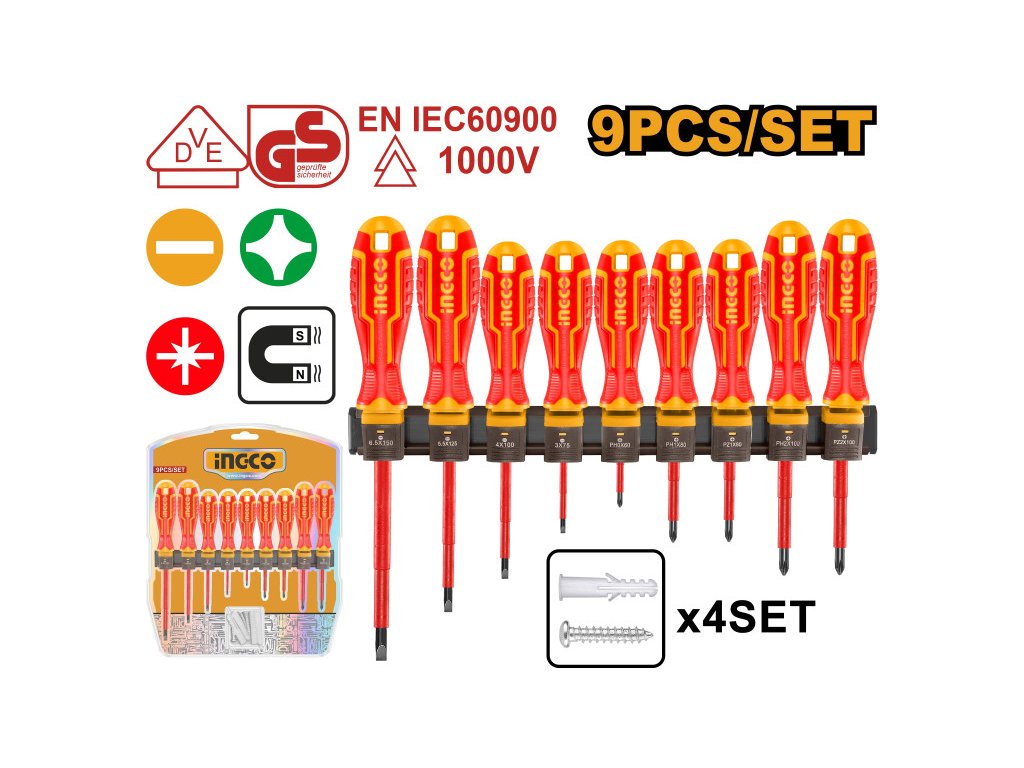 INGCO Csavarhúzó készlet 9 részes mágneses 1000 V-ig szigetelt