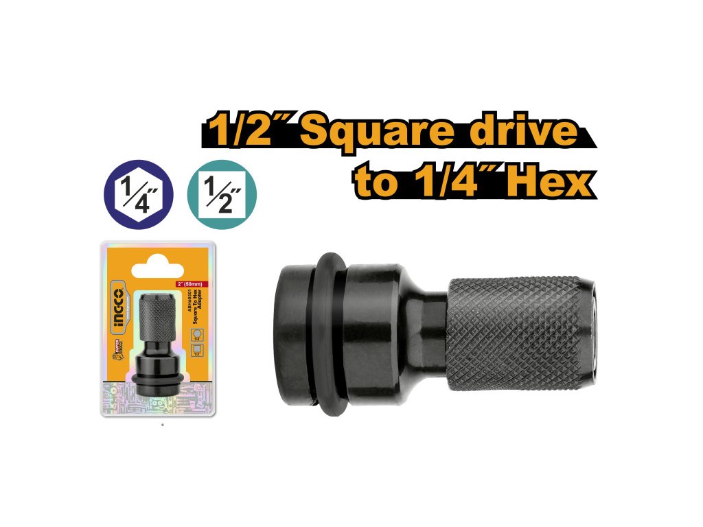 Veľkosť upínania: 1/2 Vonkajší rozmer: 1/4 hex Dĺžka: 50 mm Rozsah dodávky: 1 adaptér na nástrčný kľúč, v blistri
