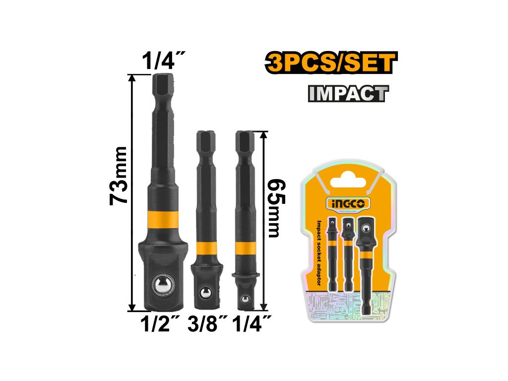 INGCO adaptér pre nástrčný kľúč 3 diely 1/4 Hex-->1/2, 1/4, 3/8
