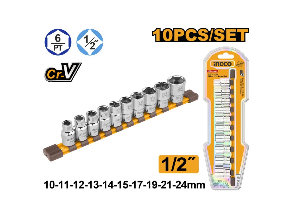 INGCO Dugókulcs készlet 10 részes 1/2" 10-24 mm CrV