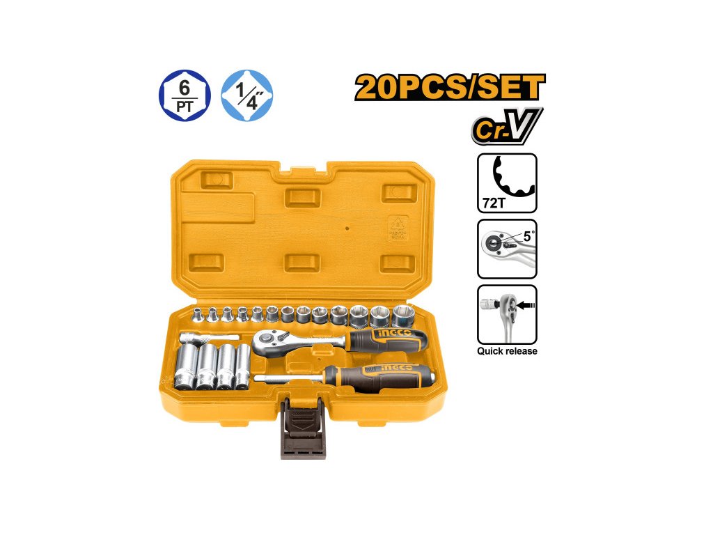 INGCO Sada nástrčných kľúčov 20 dielov 1/4" 4-14 mm CrV