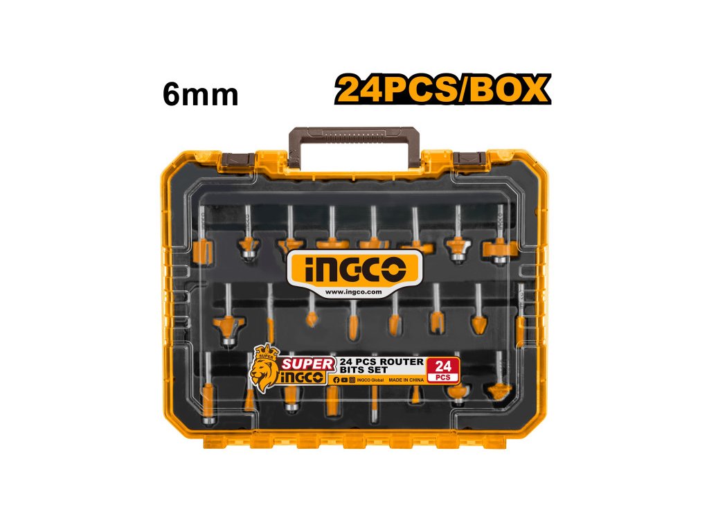 Szár átmérő: 6 mm, 1 db 12,7 mm horonyvágó fej, 1 db 12,7 mm kombinált fej, 1 db 9,5 mm fecskefarok vágófej, 1 db 12,7 mm fecskefarok vágófej, 1 db 12,7 mm 90° horonyvágó fej, 1 db 9,5 mm gömbölyített horonyvágó fej, 1 db 12,7 mm gömbölyített horonyvágó fej, 1 db 9,5 mm élvágó fej, 1 db 6,35 mm vezetőcsapágyas vágófej, 1 db 6,35 mm egyenes vágófej, 1 db 9,5 mm egyenes vágófej, 1 db 12,7 mm egyenes vágófej, 1 db 19,0 mm egyenes vágófej, 1 db 12,7 mm síkvágó fej, 1 db 3,2 mm lekerekítő fej, 1 db 4,76 mm lekerekítő fej, 1 db 6,35 mm lekerekítő fej, 1 db 9,5 mm lekerekítő fej, 1 db 6,35 mm homorú fej, 1 db 9,5 mm homorú fej, 1 db 4,0 mm római profilvágó fej, 1 db 30,0 mm 45° ferde fúrófej, 1 db 6,35 mm sarokvágó fej, 1 db 12,7 mm sarokvágó fej, Kofferben