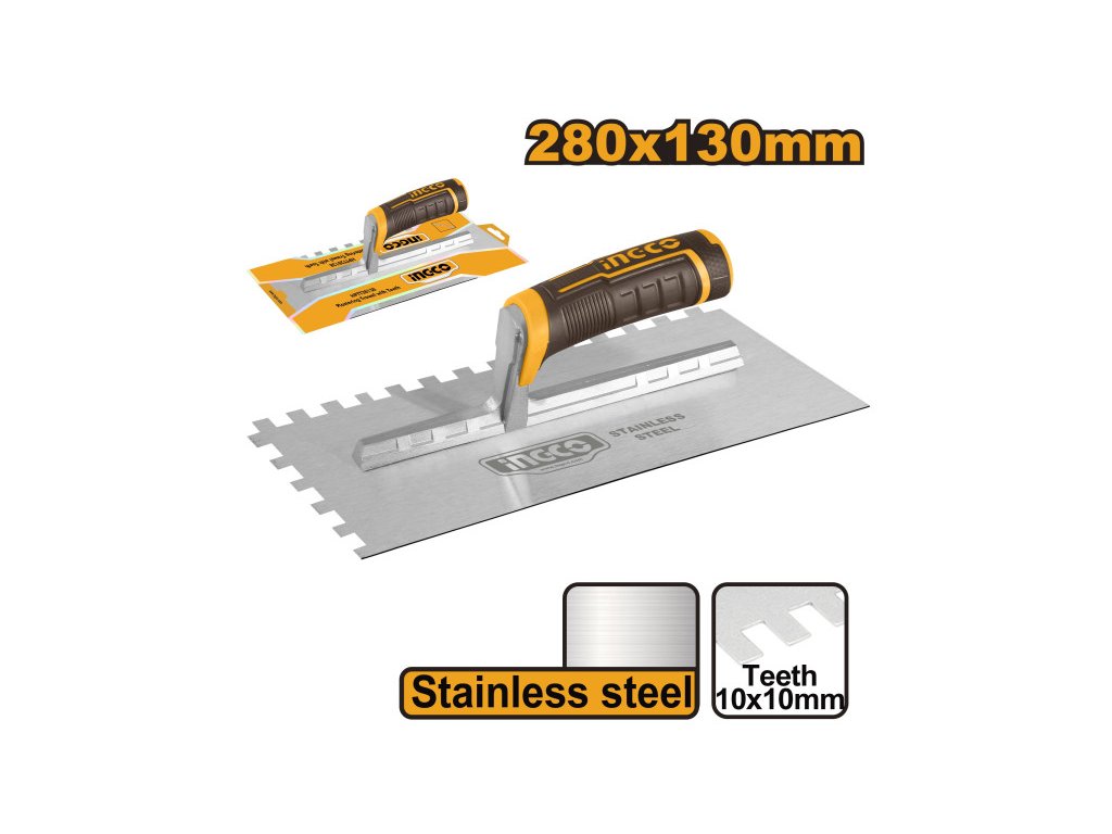 INGCO hladítko ozubené 130 x 280 mm inox 10 x 10 mm s mäkkou rukoväťou