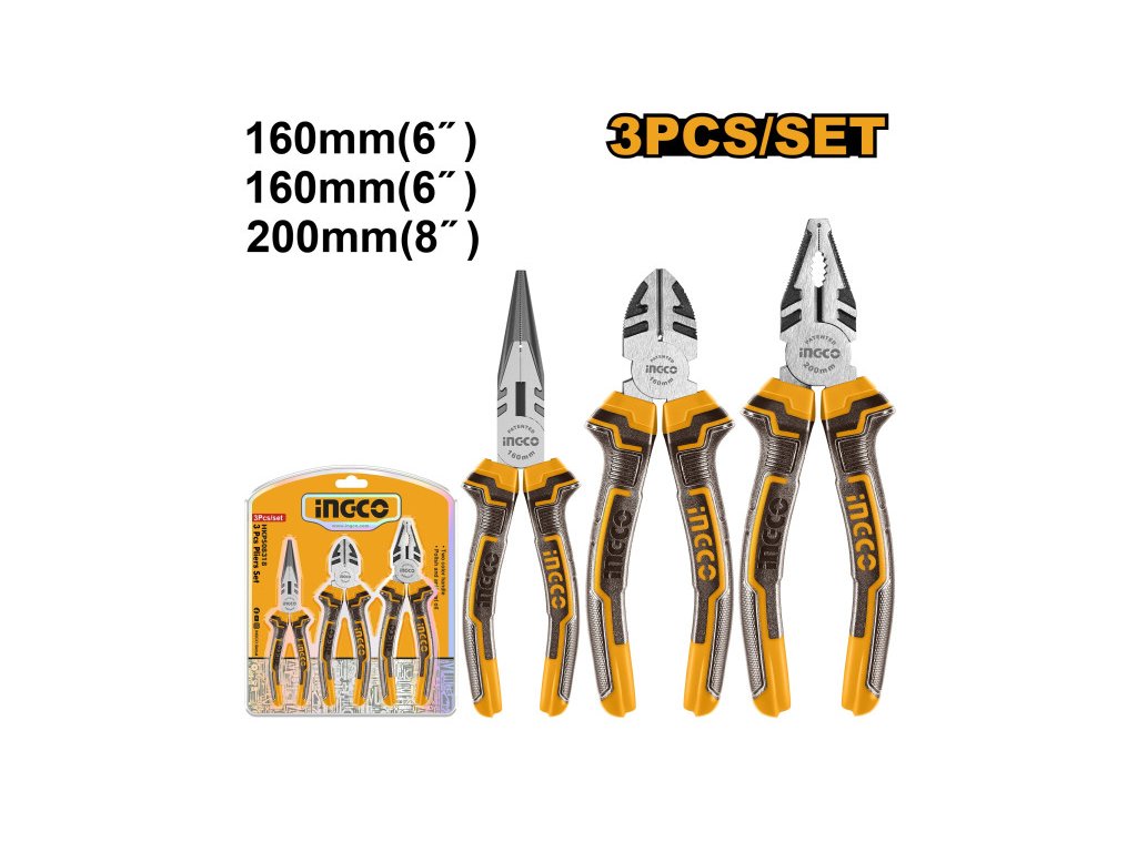 Méretek: kombinált fogó: 200 mm (8"), hosszúcsőrű fogó: 160 mm (6"), oldalcsípő fogó: 160 mm (6")